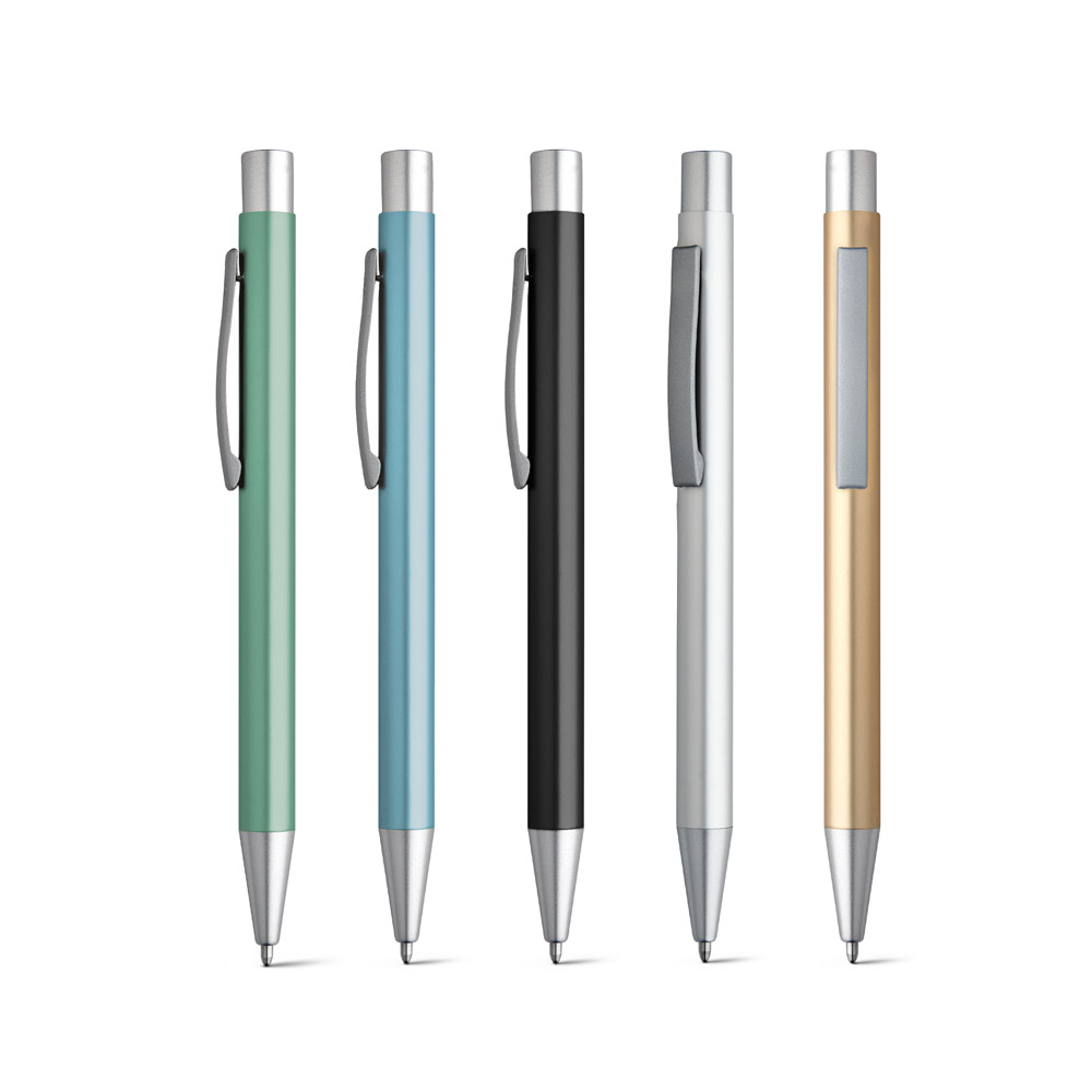 - Clipe metálico resistente: O clipe de metal reforça a qualidade da peça e facilita o transporte em bolsos, cadernos, agendas e uniformes corporativos. Além da funcionalidade, o clipe acrescenta sofisticação ao design da caneta.